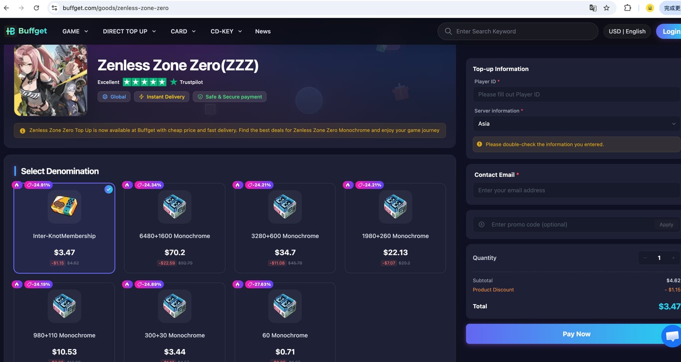 Monochrome은 Zenless Zone Zero의 핵심 통화로, 버퍼게이트에서 8% 할인된 가격으로 구매 가능합니다.