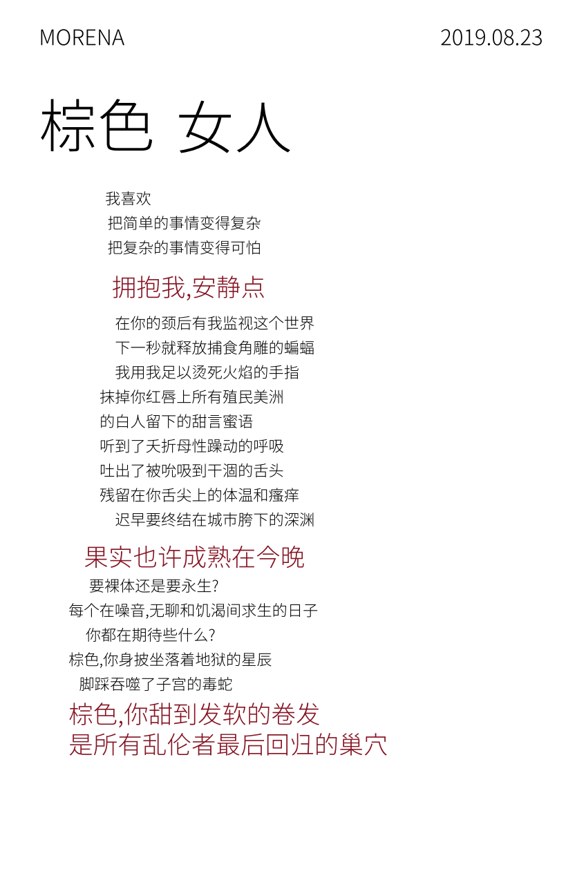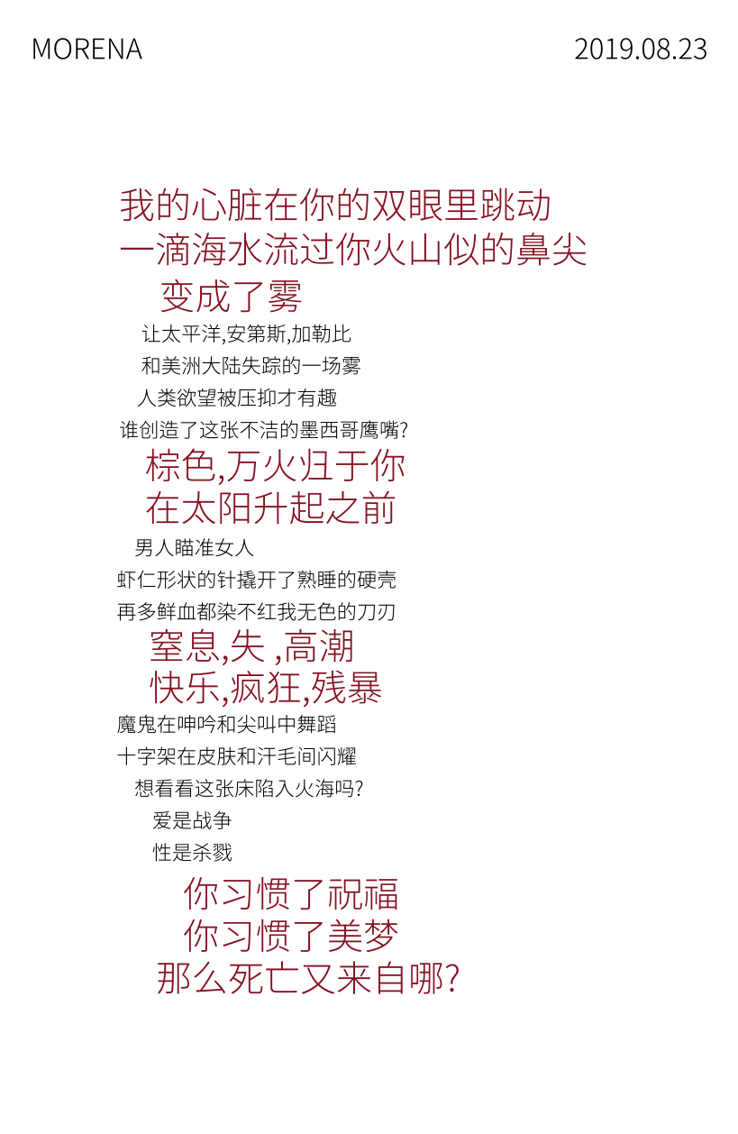 恐怖暨浪漫Rafael Cao·2024 年 2 月 29 日·IPFS·翻译成简中现在,用我的诗歌,不动声色地堕落你 Erotisimo一度为人詩歌CC BY-NC-ND 4.0 授权建议频道选择希望推荐到的频道(单选)生活事书音影旅・居性别/爱创作・小说时事・趋势身心灵没有适合的频道不参与频道推荐 (文章将出现在「还有」中)下一步喜欢我的作品吗?别忘了给予支持与赞赏,让我知道在创作的路上有你陪伴,一起延续这份热忱!支持作者支持作者5Rafael Cao来自作者相关推荐基督教没有骗谁,也没有背叛谁,只是跟自己开了一个玩笑我看《本能》:名垂影史是因为把最必须被压抑的那样东西:男性受虐幻想,暴露在了大众面前萨德:法大还是神大?55