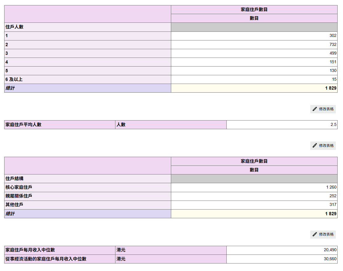 計算使用的是宏福苑2021年人口普查中無計入劏房或暗盤的保守數據,如下:
