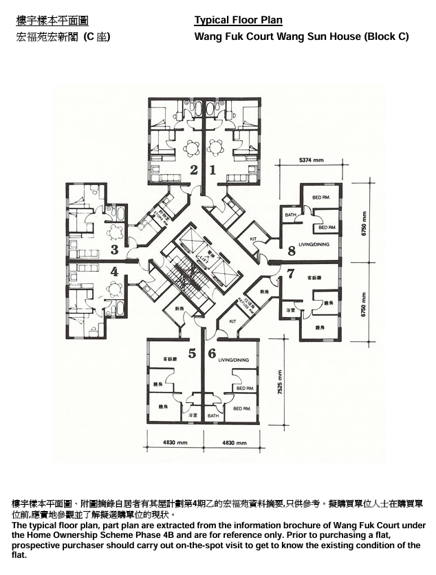 根據 2021 年香港大埔區議會分區宏福苑的人口普查數據,宏福苑 8 座樓宇的家庭住戶總數為1829戶(如下首圖),一層樓 8 戶(如下第二張樓宇樣本平面圖),註冊人口總計4643人,家庭住戶平均人數為 4643 人 / 1829 戶 ≈ 2.54人。