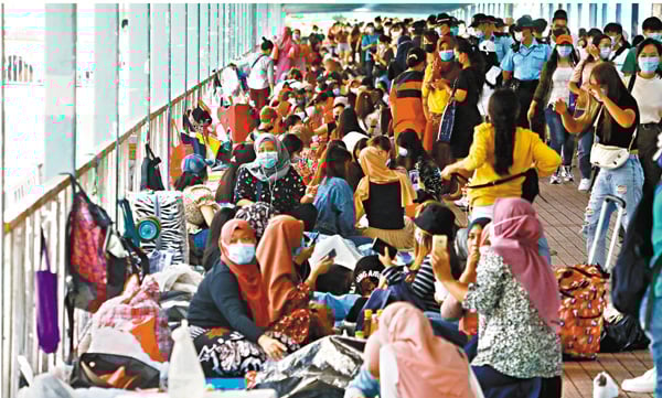 香港旺角一行人天橋逼滿放假聚會的外傭 社區服務/探訪人員