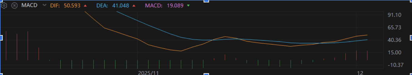 而MACD快慢線還在零軸上方,說明大方向還是多頭掌控,但大家注意看,那紅色的小柱子在縮短,這表示短期的上漲動能可能在減弱,需要新的力量注入。