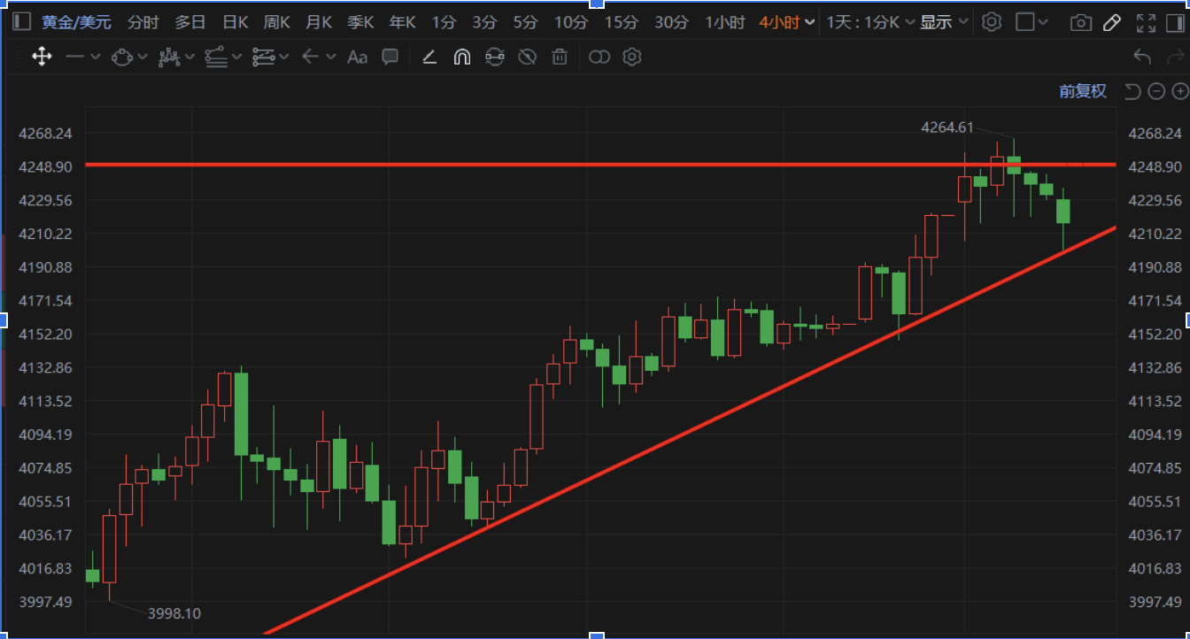 前面說了這麼多,最後讓我們快速整理一下今天的核心邏輯。目前的黃金市場,正站在一個關鍵的十字路口。技術面上,日線等級的上漲趨勢依然完好,但短期在4250-4290美元這個天王山腳下遭遇了頑強抵抗,四小時圖的震盪整理意味著多空雙方在此陷入膠著,市場急需新的動能來打破平衡。