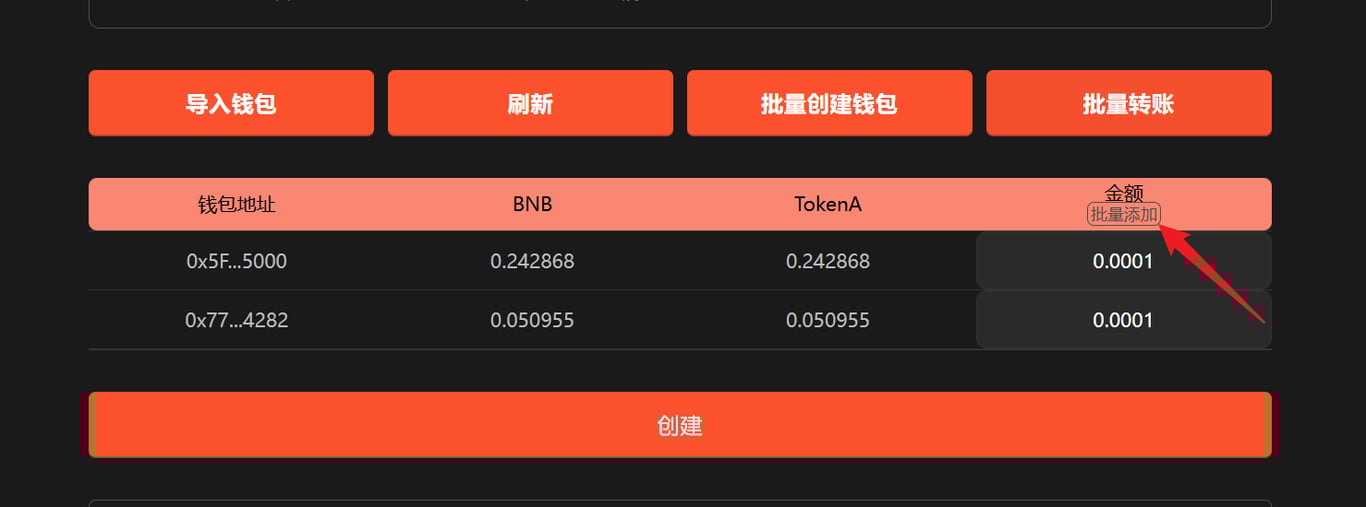 所有服务费以及创建代币的费用由导入的钱包第一个钱包进行支付,请保证余额充足。
