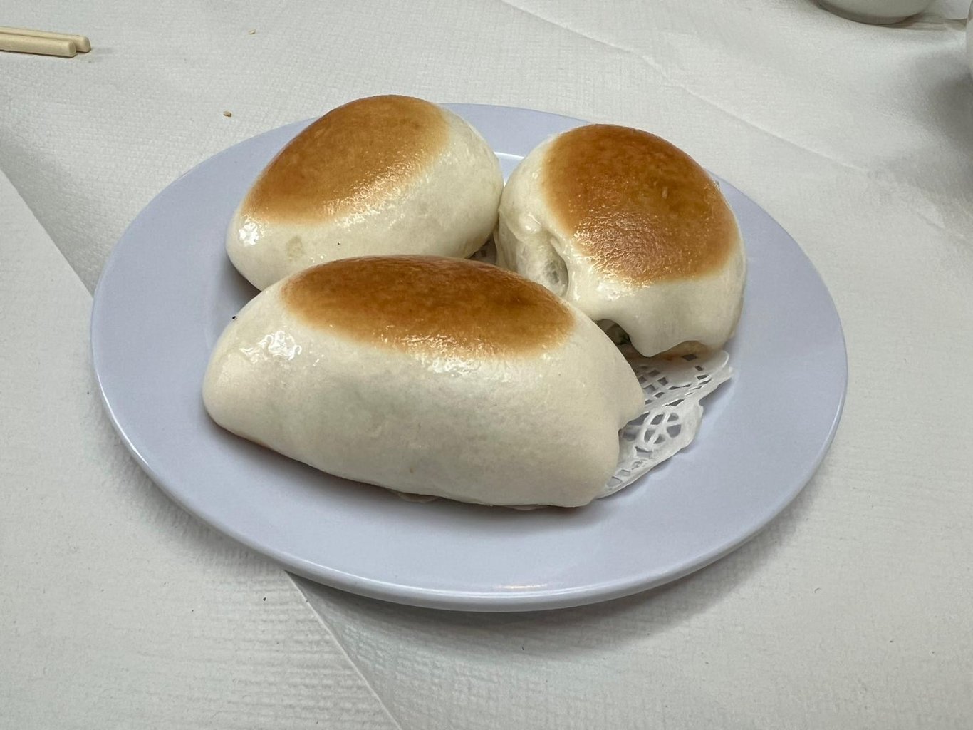 此個生煎包外型不像生煎包,反像內有肉餡的扁身銀絲卷。不過味道非常可口,由於媽媽喜歡,前後點了2碟。生煎包底部焦香,金黃,脆而不硬。咬下去時喀嚓一聲, 沒有因為過焦而割口。我喜歡此麵皮,蓬鬆軟嫩,不是死硬,沒有黏牙或蒸得過濕。豬肉餡肉汁豐富但不油膩。