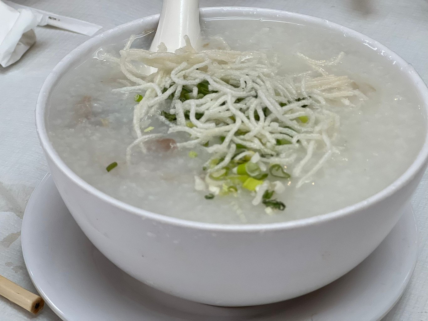 我不喜歡吃粥的, 記得《燕食記》的作者葛亮說,一碗好的粥是一口活氣。我始終認為當年廣東道糖朝的粥是第一,此碗皮蛋瘦肉粥,屬五甲之內吧。米粒開花,不過稠或過稀,底味是甜的,有種米和肉熬出的自然甘味。皮蛋香而不腥,入口嫩滑。瘦肉切絲,處理得當,入口柔軟。