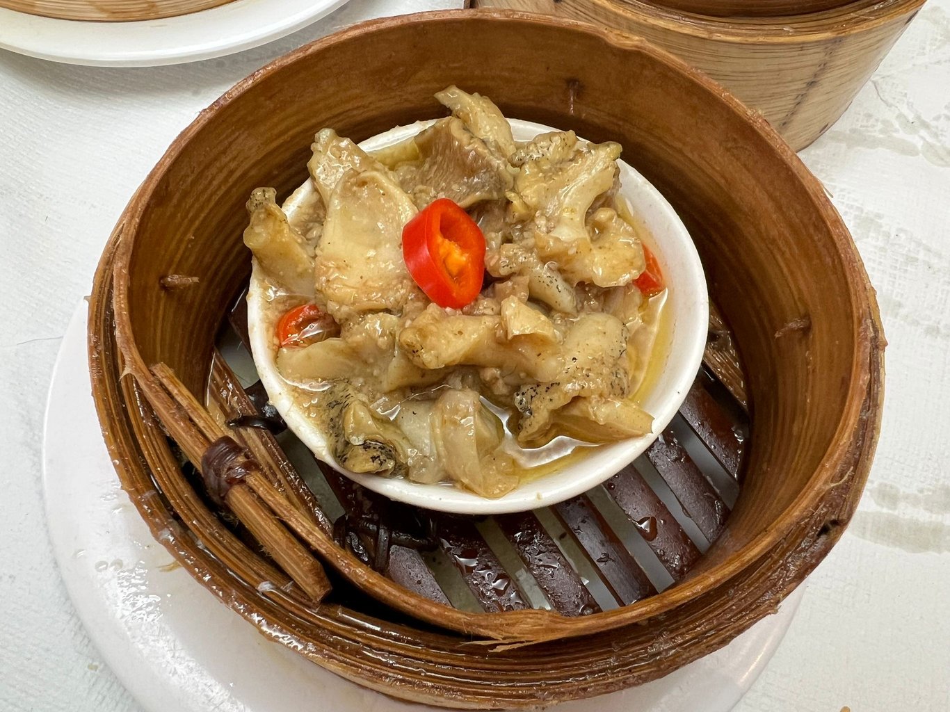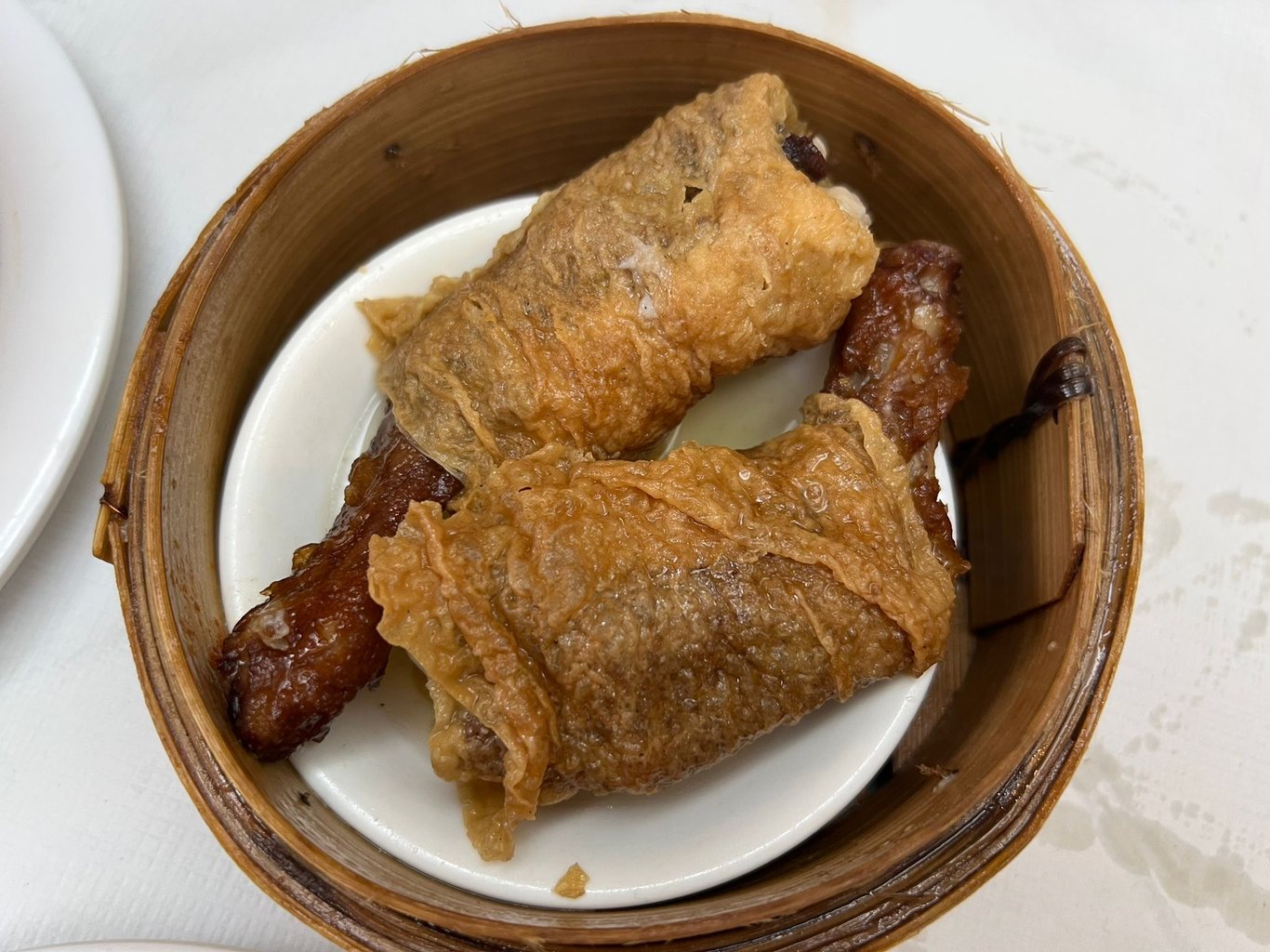 媽媽問我想吃什麼,我看看點心紙,點了鴨腳紥。鴨腳紥是一道懷舊點心,以鴨腳,芋頭,火腿,蝦,冬菇等一起用腐皮捆綁,再淋上蠔油蒸熟。是功夫繁多的菜色,因為鴨腳要去腥,去雜質,炆煮時間要剛好,入口時才能皮與筋有彈性,不乾硬,也不至於散掉。