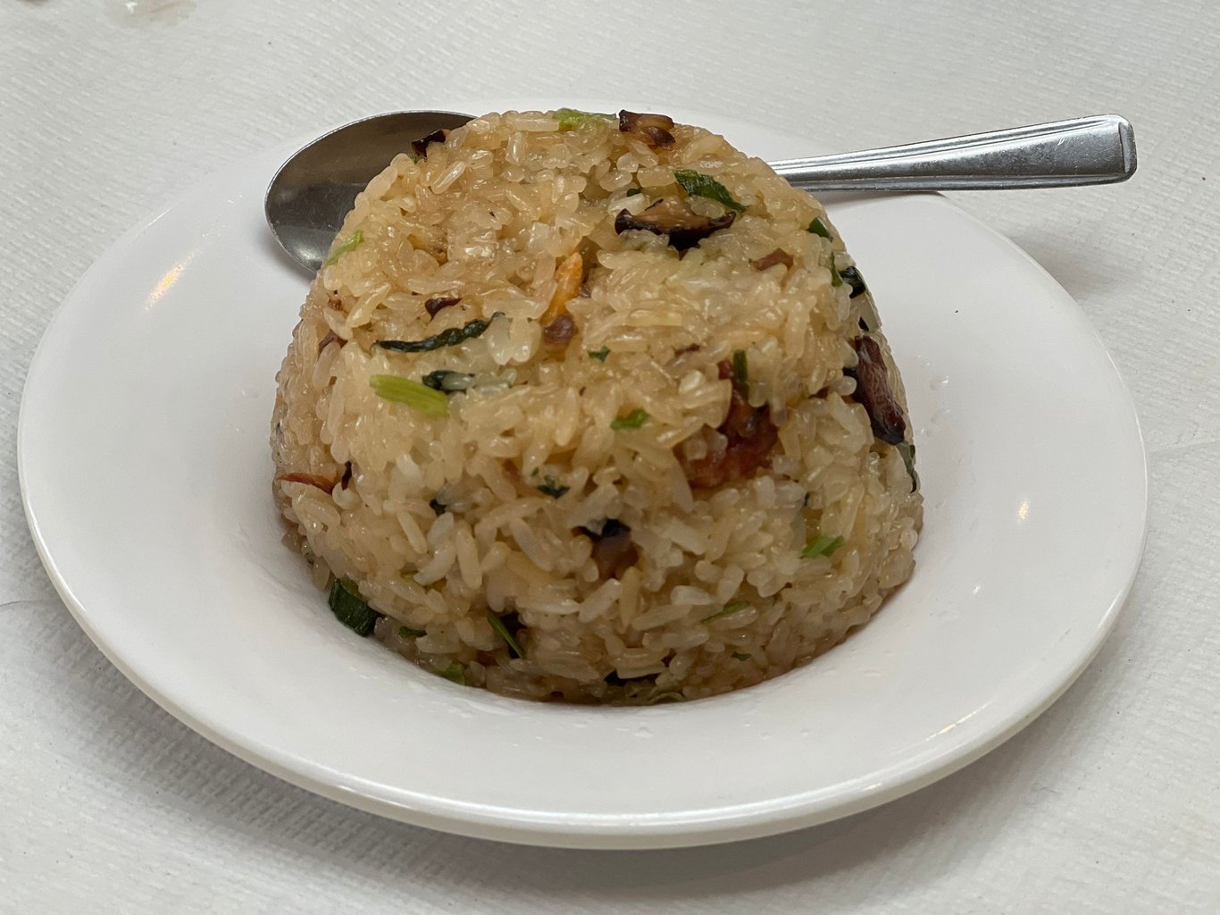 倫敦version的生炒糯米飯比事頭婆的弄得細膩。內𥚃有臘腸,蝦米,冬菇,蔥花,蛋絲,味道均勻,每一口都有鹹香層次,米粒乾爽、粒粒分明,入口有彈性但不黏牙。