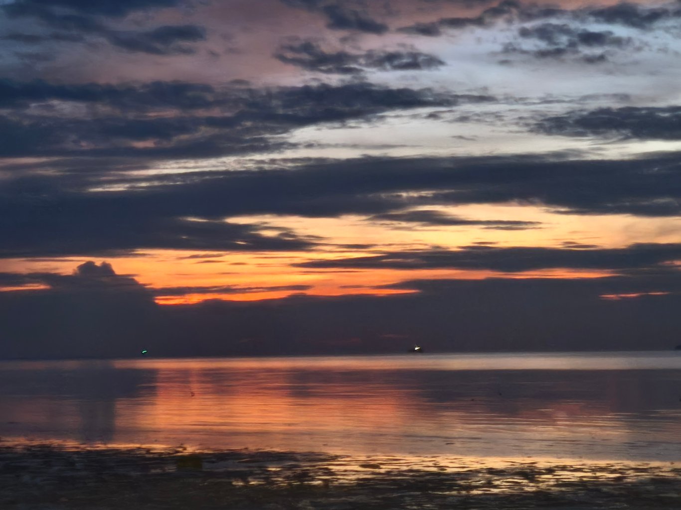在夕阳处,我都会到西边的海边去看日落。要我说,一天最美的时刻是何时?我认为:是带着水雾、空气中带着夜晚温度的早晨,以及热烈的中午后、夜晚的前菜、带着炙热温度的傍晚时分。海边的日落、日出的高山,是我见过最美丽最壮举的来自自然母亲的恩惠,是一种来自星球之母给我的灵魂之美。我看过夕阳从海和天空的边际慢慢落下,如同滚烫的铁球慢慢的被水的温度包容。我看见日落染红了整片天空和大海,一片片红色的云朵,白天像是空白的纸,被夕阳炙热的颜色染上了一些红色、橙色、粉色、蓝色...。我赤脚踏上冰凉的海水,感受着潮汐与海浪在我的肌肤流动;我听着大海海浪的奏响曲,是来自海洋神波塞冬的呼吸声