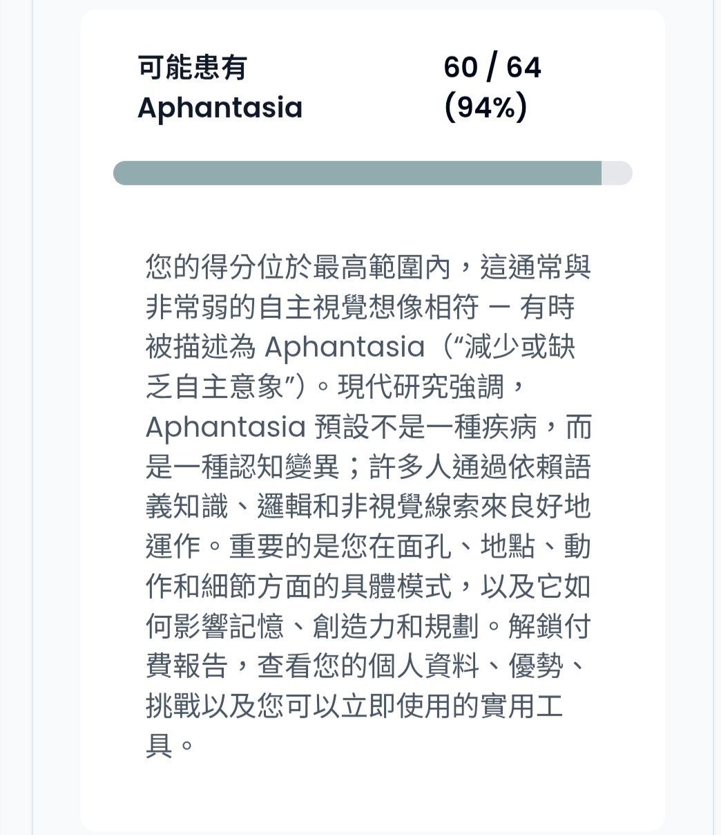 剛剛心血來潮做了一個免費的心盲症測驗,我的分數真是高得嚇人