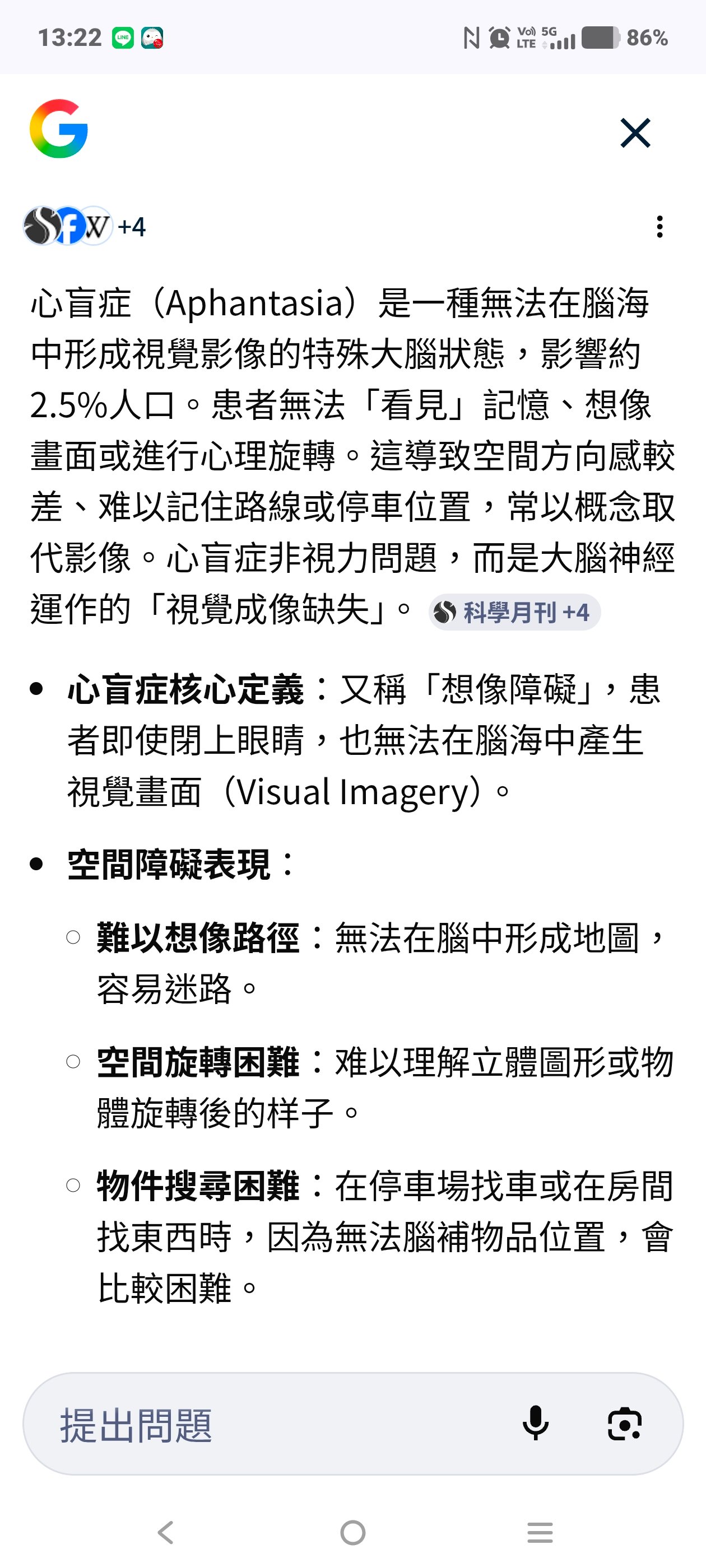 我是屬於「空間障礙型」的【心盲症】,然後這種事跟大部分的人解釋是解釋不清的,解釋了還可能適得其反,像在找藉口一樣。