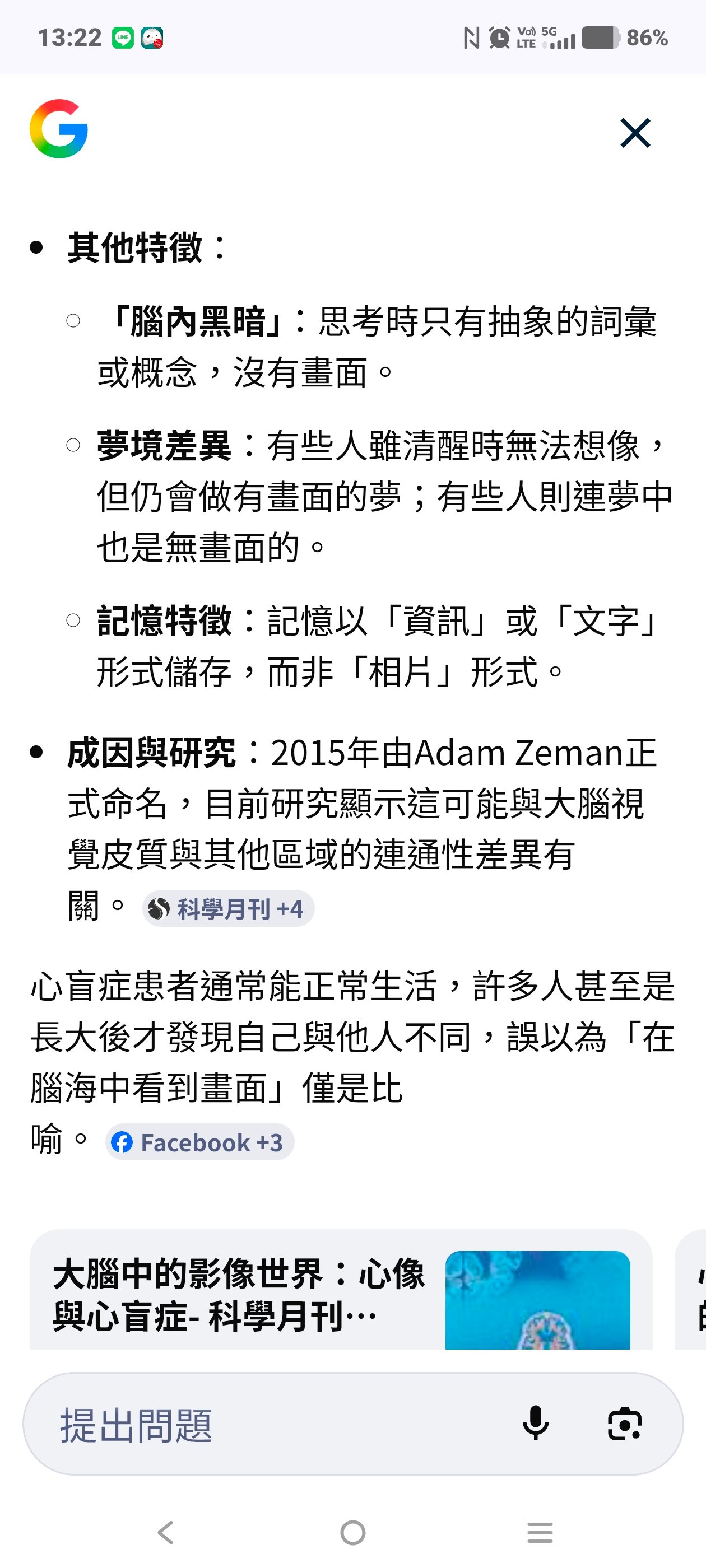 (我突然想起幾年前跟風寫了那些不為人知的事,第一條就是我的特殊記憶,我的記憶最早出現在嬰兒時期,我的內心活動、感受,都能清晰捕捉、記錄,唯獨我的記憶裡所有的影像都是模糊的,比我先天的高度遠視還要模糊。原來,這是心盲症的關係)