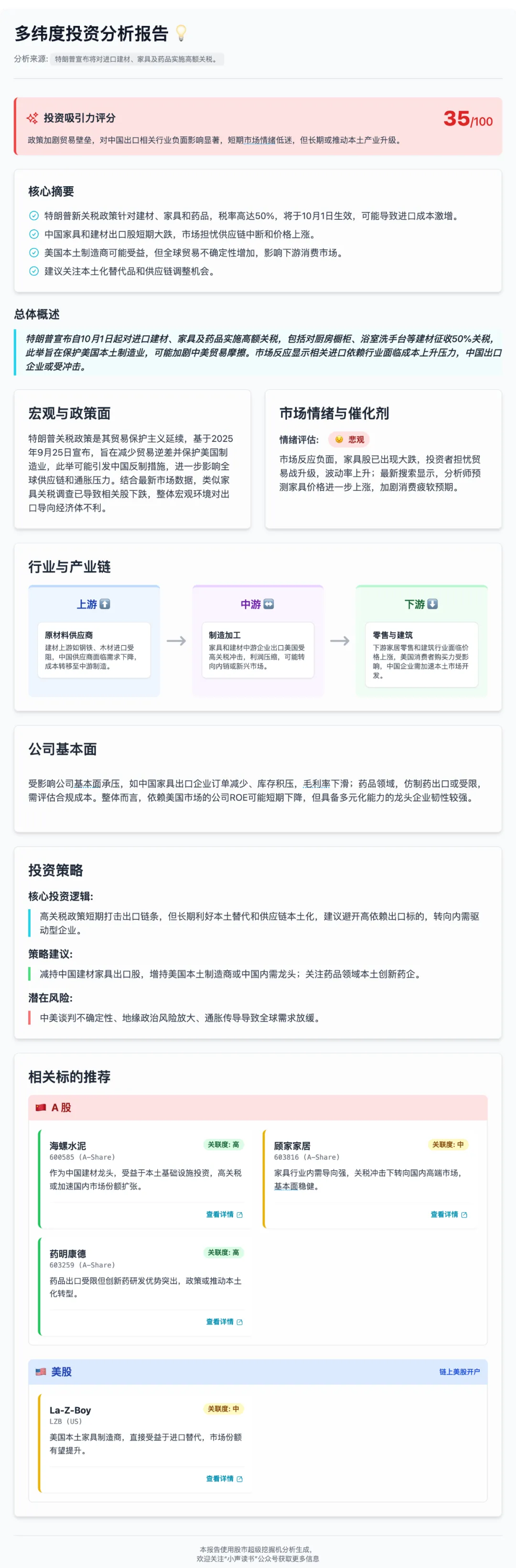 我们看看最新的挖掘效果,以「特朗普宣布将对进口建材、家具及药品实施高额关税」为例,效果见下图。👇