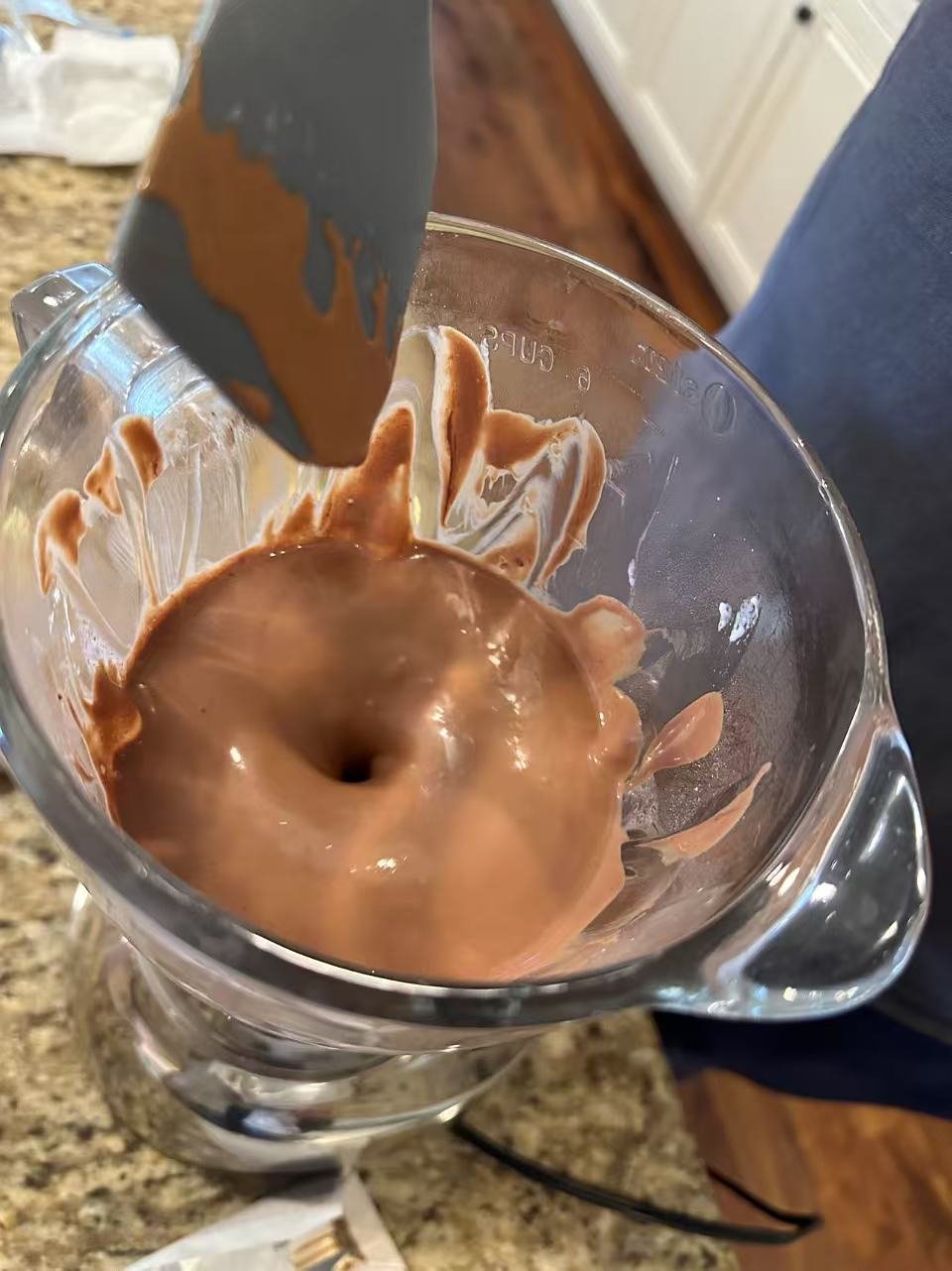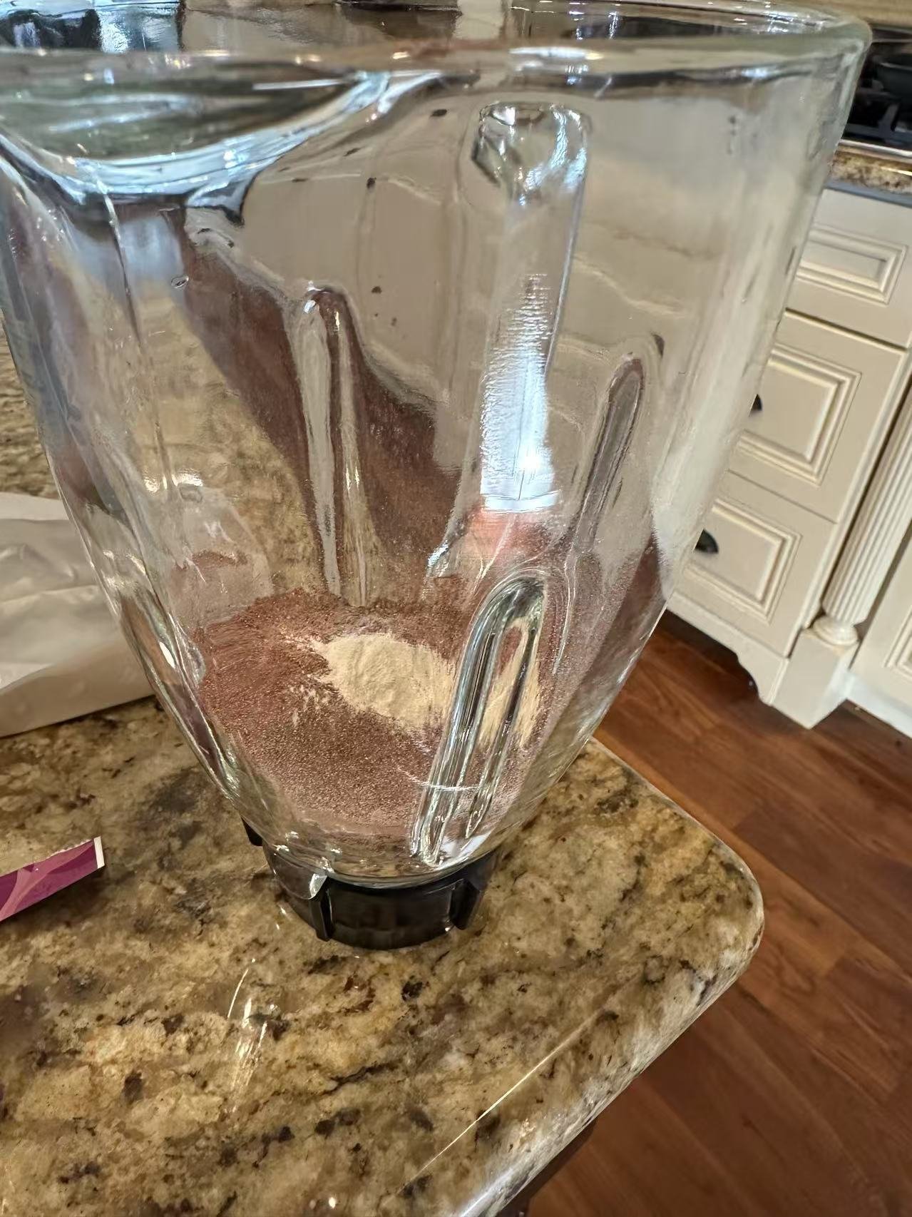 然后把可可粉,巧克力粉以及人工甜味剂放入搅拌机中搅拌均匀。