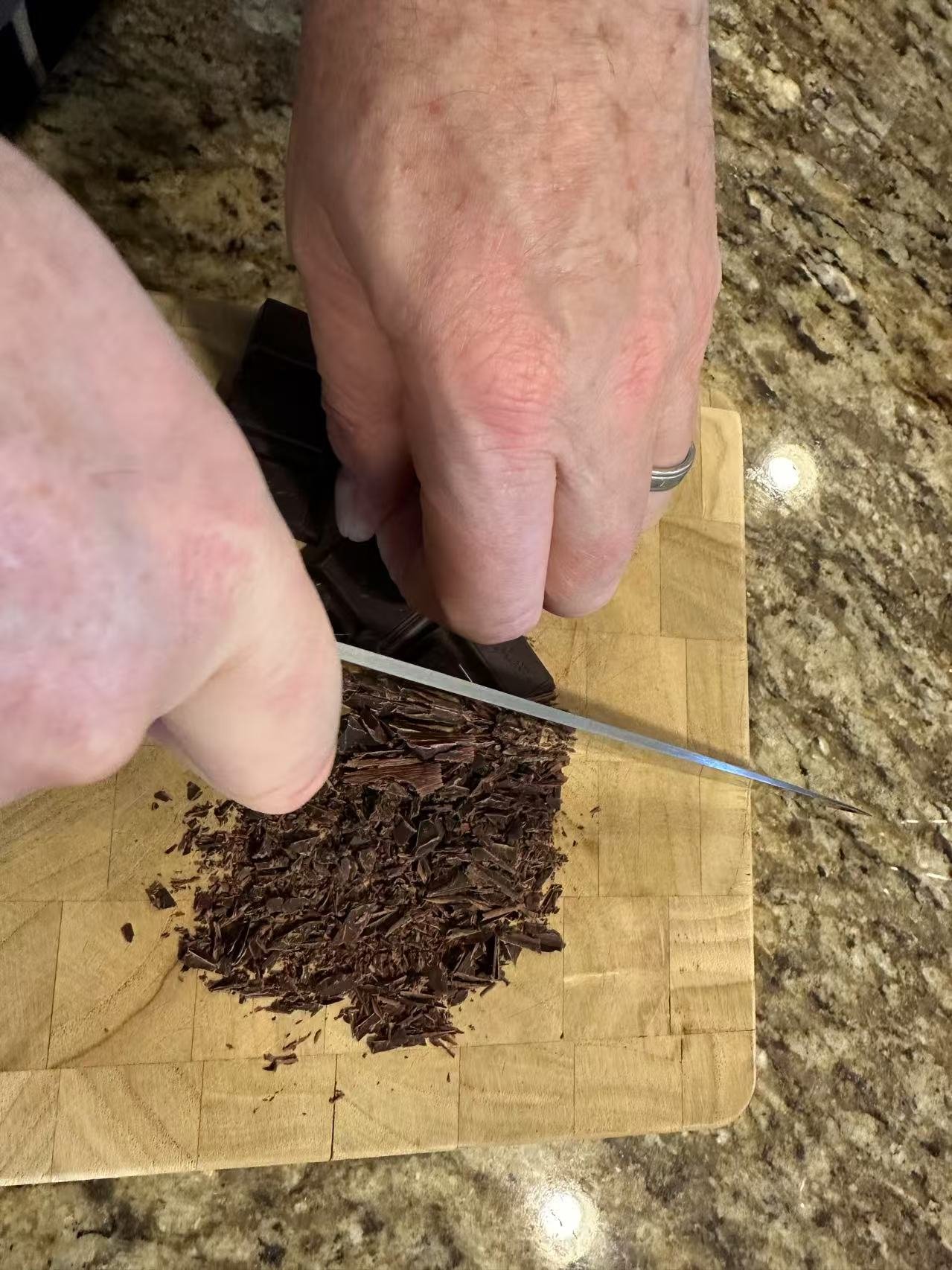 先准备原料。某生先把不含糖的巧克力切粉末。这不含糖的巧克力如果直接吃那真是如嚼蜡。一点都不好吃。