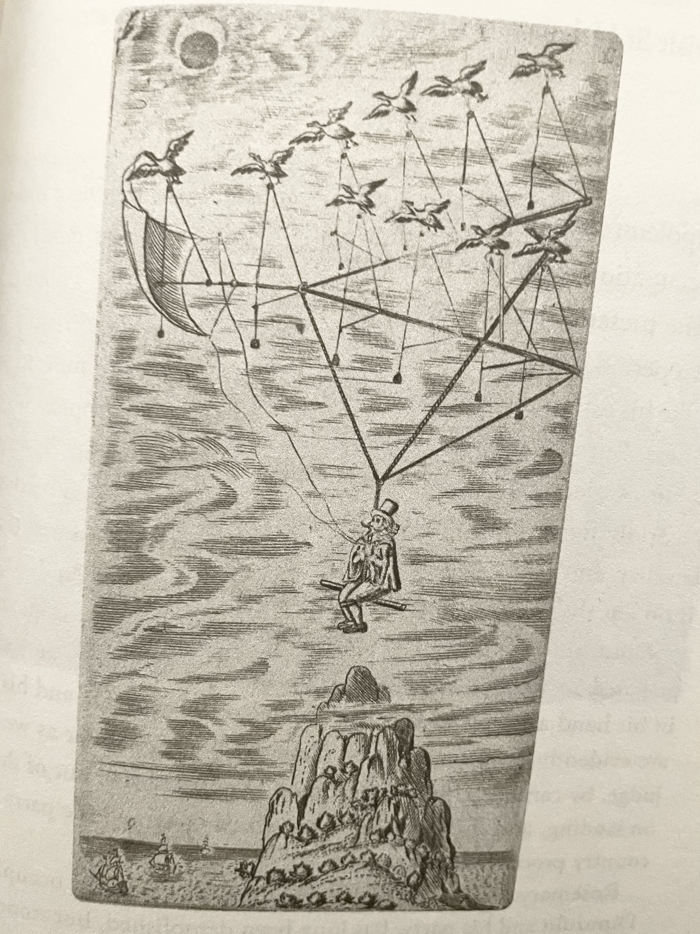 他們被徹頭徹尾地流放、俘虜、殖民。他們的流放地是St Helena島,在好望角西邊的海上小島。這個小島上的人因為遠離塵囂,也成了流放的人的聚居地。甚至,有人畫出十九世紀對於逃離該島的想像👇