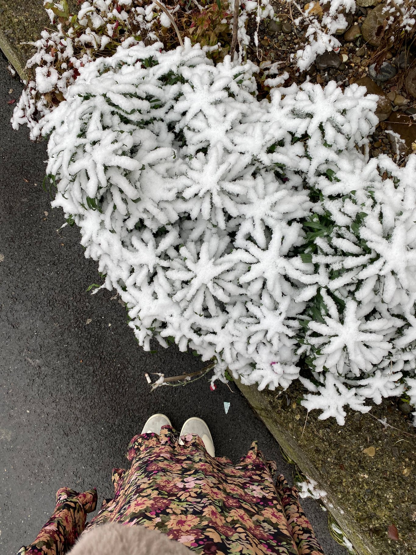 沒想到今天下起淡淡的白雪,一小點很可愛的那一種,臉上一直被白雪點點親吻,一直隨處撥動樹葉的雪,覺得很好玩。