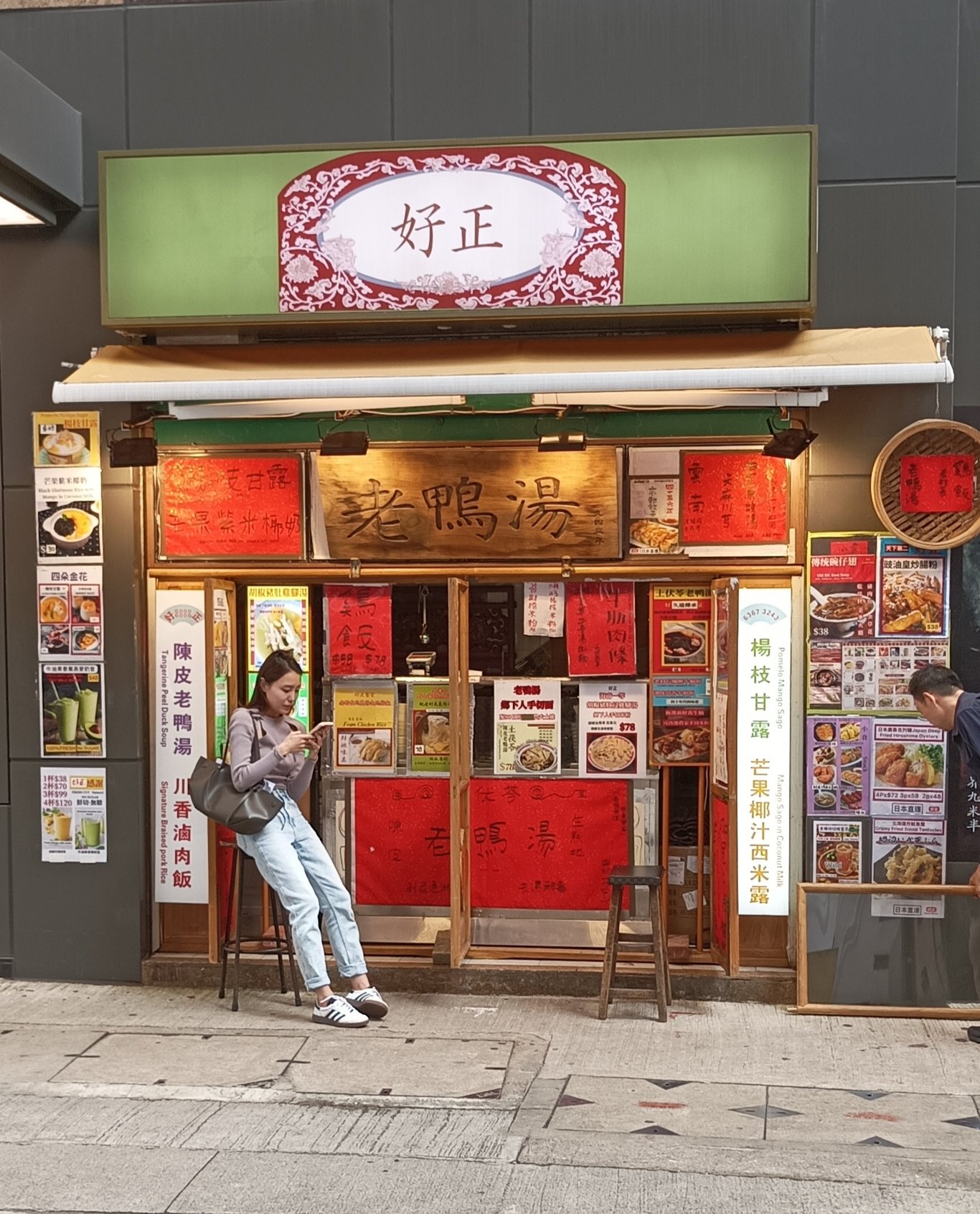 附近有另一家小店叫「好正」,是一家專賣老鴨湯的外賣小食店,店名敢叫「好正」,果真是那湯很好喝嗎?卻不見有人排隊。