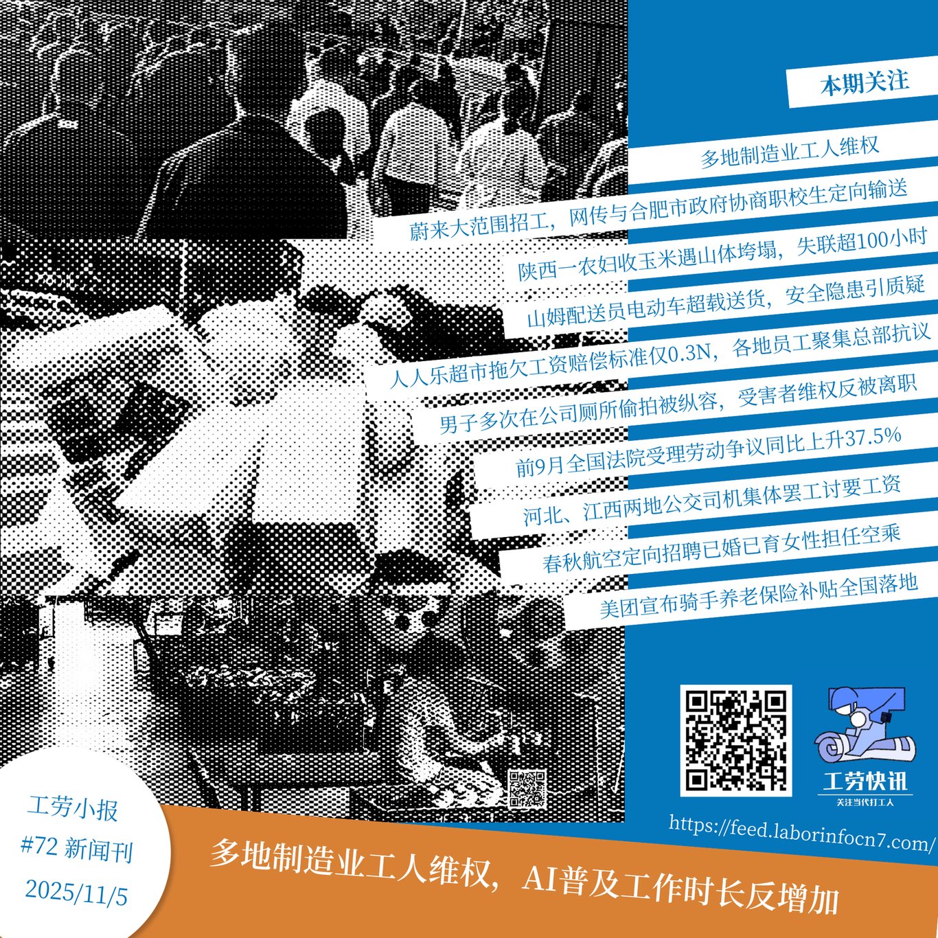多地制造业工人维权,AI普及工作时长反增加|工劳小报 #72 新闻刊