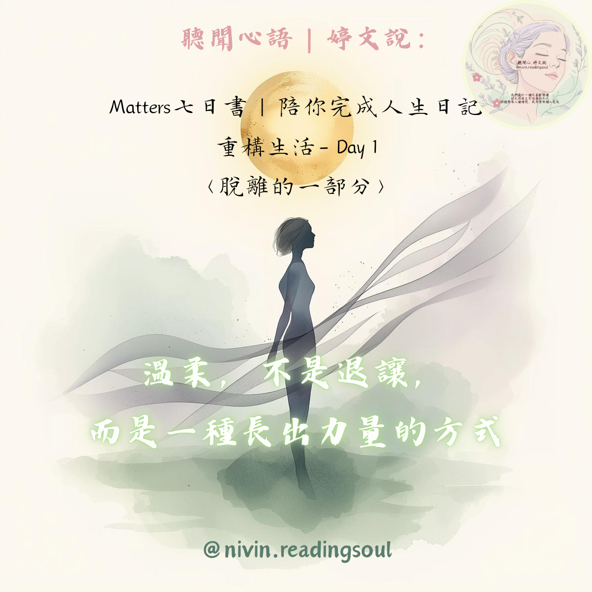 這幾年,我常常在思考「脫離」這件事;能否放下關係裡那份「非得負責」的慣性?從外在的角色,到內在的執著,有時我們不是活得不夠努力,而是活得太緊。像是被某種無形的線牽著——去應對、去取悅、去堅強。你說人生能演嗎?當然能。只是,當我不想再演的時候,為什麼就被認為「做自己」不行?別人憑什麼來指指點點我?