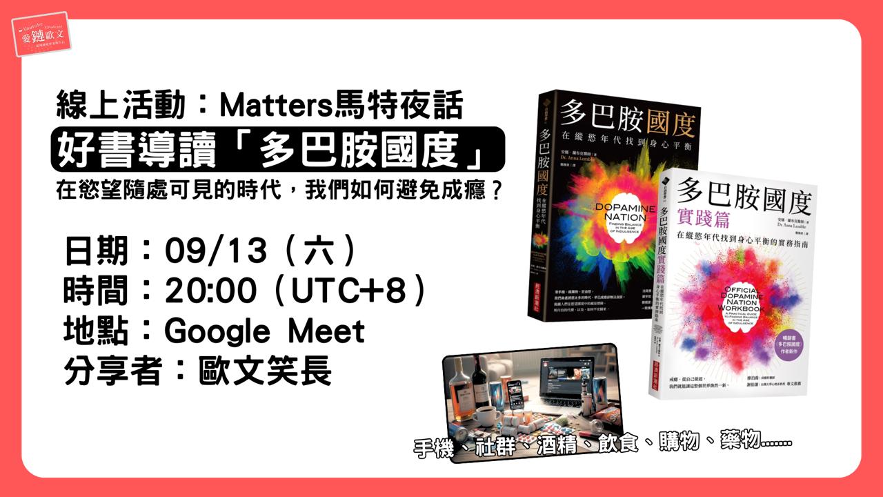夜话128期回放 欧文笑长 好書導讀《多巴胺國度》,在縱慾年代找到身心平衡