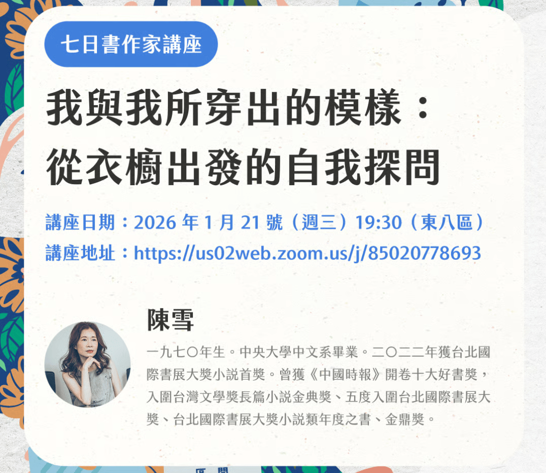 七日書講座文字精華|陳雪:我與我所穿出的模樣:一場從衣櫥出發的自我探問