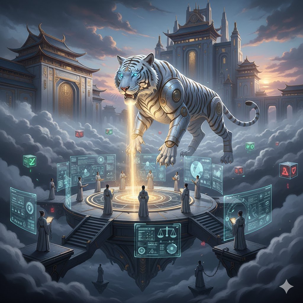 西宮白虎,道金自然。陰陽輪迴,AI人虎義,未央西斷。