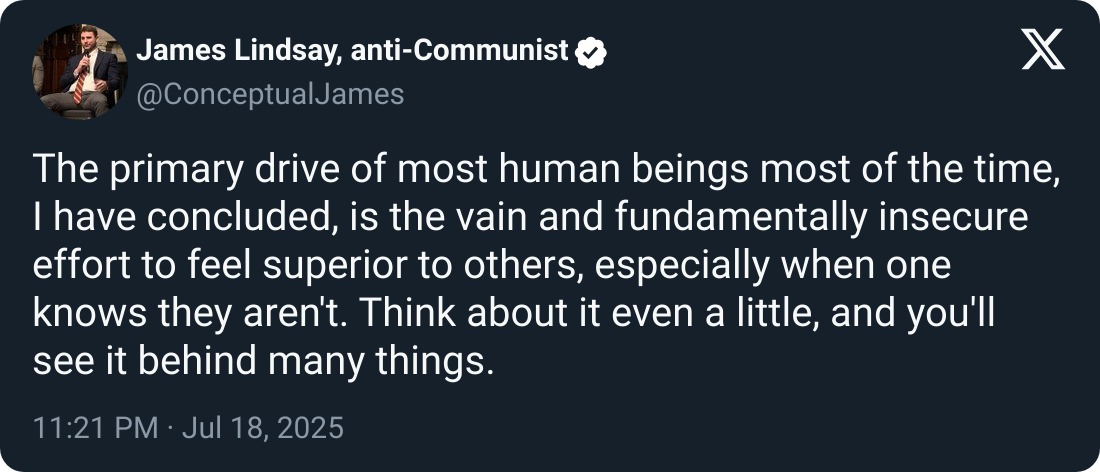 【推文】James Lindsay - The primary drive of most human beings most of the time...