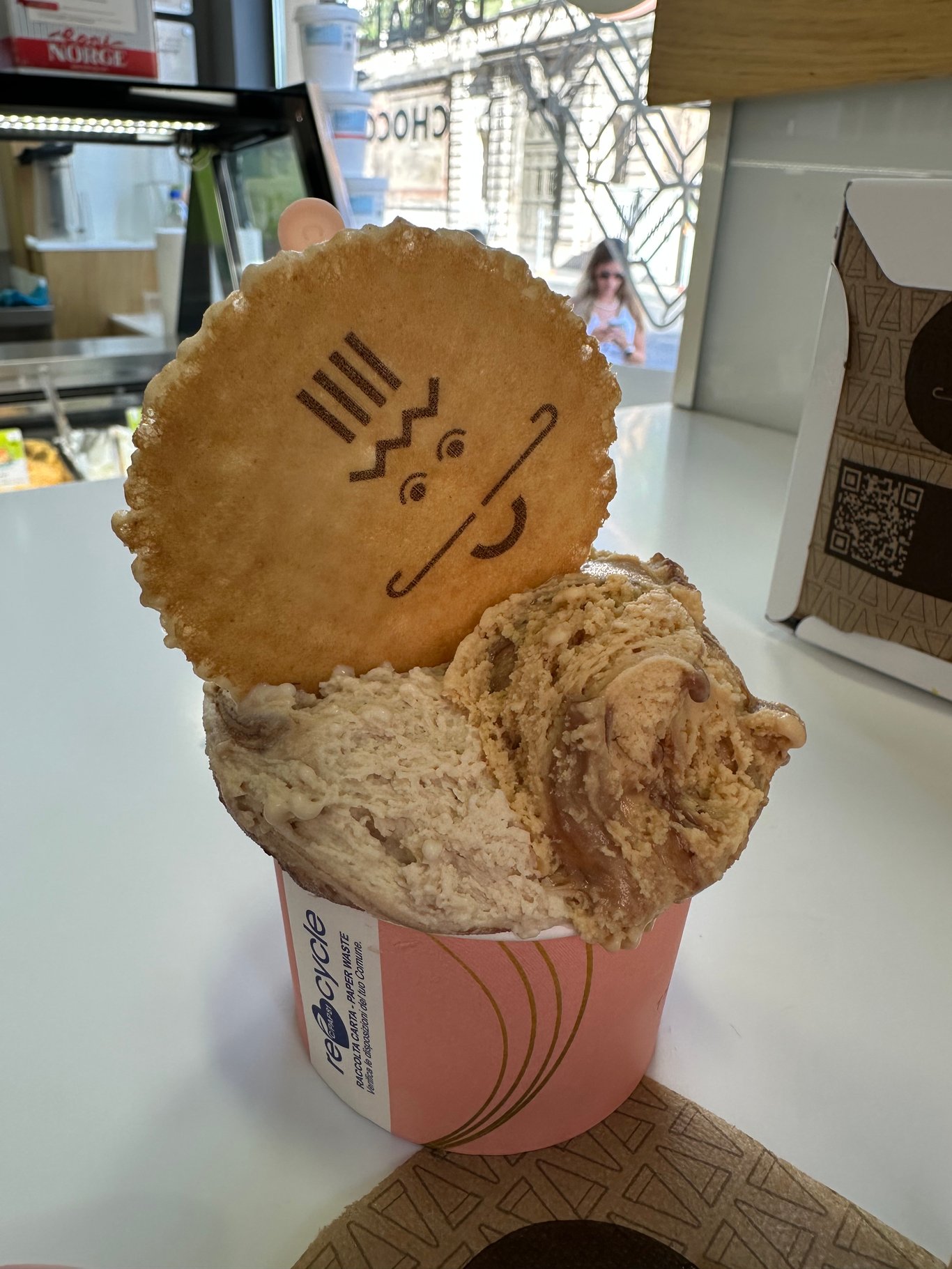 哇,在意大利有种店真是到处可见。特别是夏日的时候,那就是gelato,冰激凌。不管是在罗马,佛罗伦萨还是威尼斯,这种店的生意不是太好了。 我们在罗马的第一天,在老城区暴走之后,就马上光顾路边的一家冰激凌店,美美滴享受了一大杯的冰激凌。 热量再高也管不住嘴巴,先吃了再说。 等我们到了佛罗伦萨,那更是敞开肚皮来吃。而且在他们的购物…