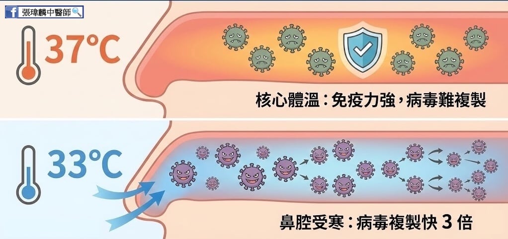 耶魯研究:鼻腔降溫 4 度,病毒複製快 3 倍!中醫師談急性鼻竇炎的治癒術本文紀錄一位自行服藥無效的患者,如何在介入中藥後,迅速緩解咽喉腫痛與鼻涕倒流。不只談治療,更談預防。這是一篇結合「臨床實證」與「生理機制」的深度分析,告訴您為何「鼻腔保暖」是比吃藥更重要的防疫基本功。