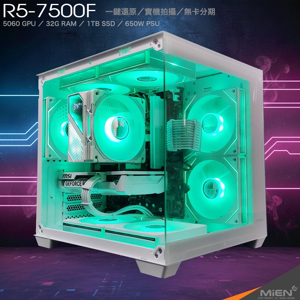 MiEN R5-7500F RTX5060 32GRAM 1TBSSD 剪片製圖白白機色機殼米恩電腦主機