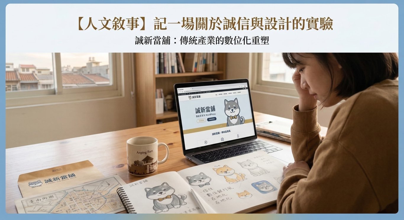 傳統產業與現代美學的碰撞 在台南這座充滿歷史底蘊的城市中,傳統產業隨處可見。然而,「當舖」這個行業往往被厚重的門簾與神祕感所遮蔽。身為一名網頁設計師,我接到了來自誠新當舖的挑戰:如何利用設計,打破大眾對典當業的刻板印象? 第一步:用「數位銀行風」建立信任感 我們在規劃誠新當舖的視覺識別時,決定屏除傳統台南當舖的昏…