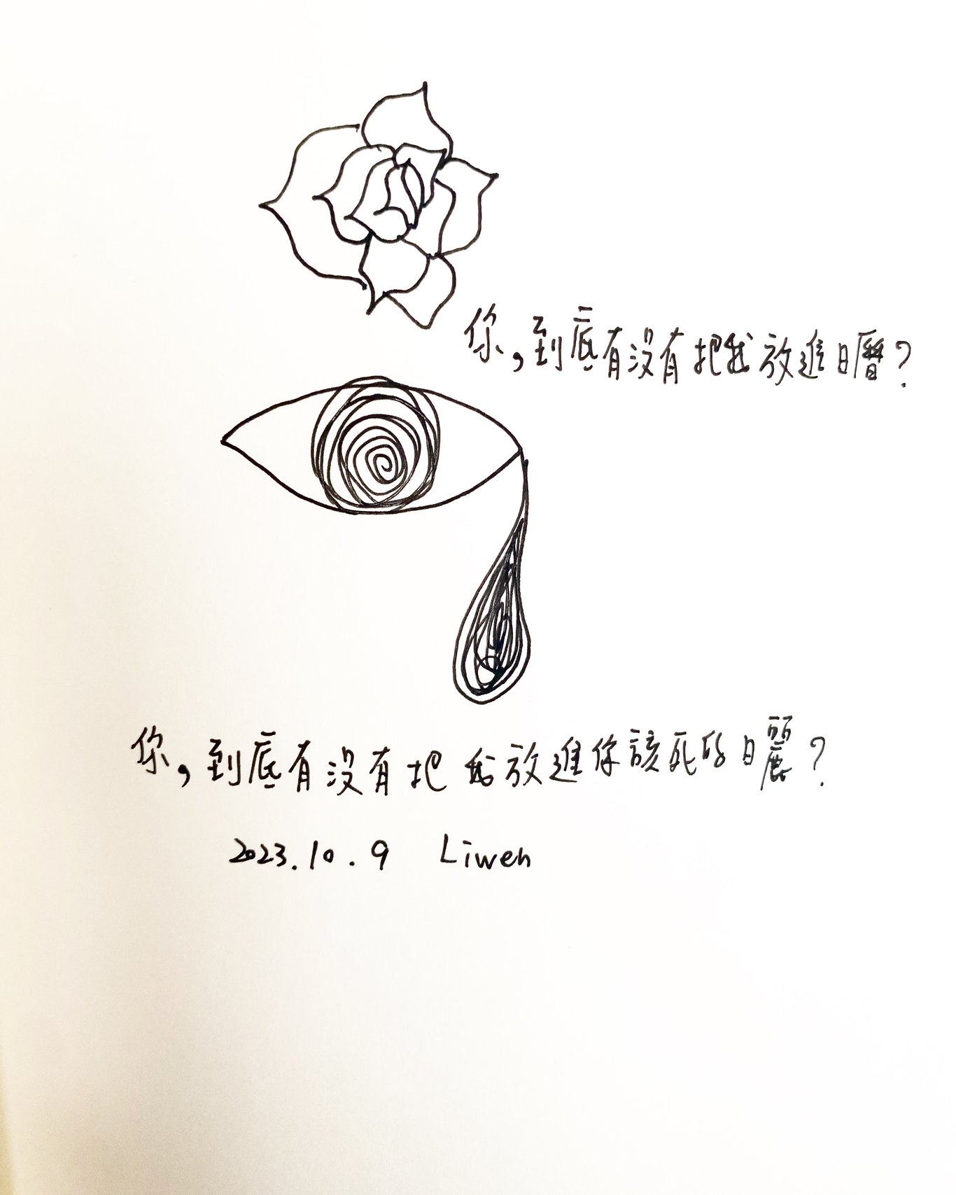 雖然是定期更新遺書的人但真的要死的時候會發現好多事情沒交代完超酷,像是喪禮想辦成派對、工作要如何處理、誰要幫我照顧嚕嚕、還沒說出口的那些話,於是一寫就寫了四頁。手機充電只是為了E,方才還沒好好道別,果不其然手機螢幕亮起時他留了「所以你決定了?」我回他,在寫遺書、手好痠。也是、你話這麼多,他回。