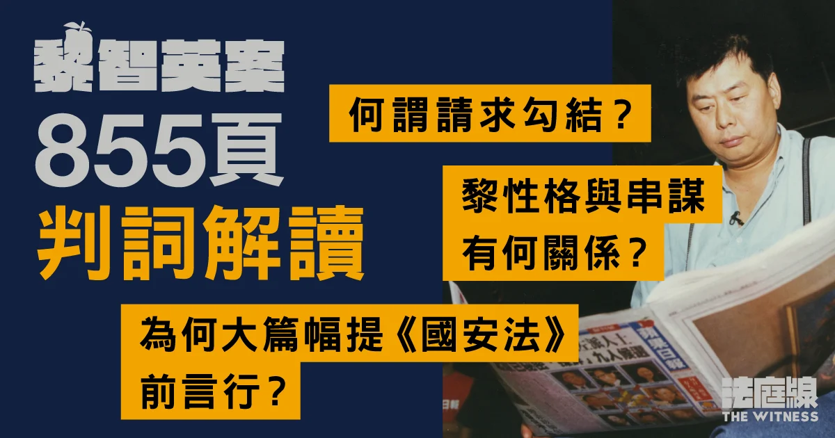 黎智英案判詞解讀1|為何大篇幅提黎《國安法》前言行?其性格與串謀有何關係?