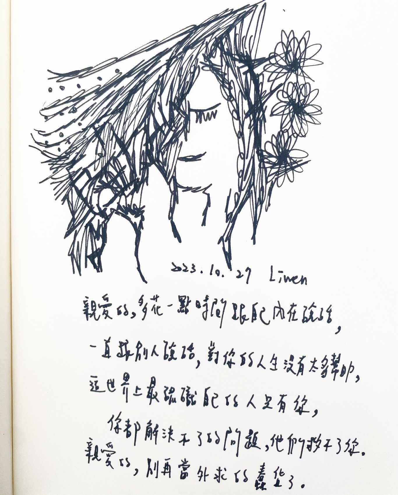 親愛的漂亮寶貝,要努力找到那些讓你快樂的小事,那些讓你內心充實的小事,很重要很重要。 一個人很悲傷的時候,很無助的時候,要想起那些小事,可以讓你活過來的事。 媽媽沒辦法陪你一輩子,但那些小事可以。 愛你的媽媽 2025.4.15 2023.12.15 1. 親愛的,你在發光。 親愛的,你也在發光。 能好好照顧自己好好發光。 這個世界才會是美麗新世界。 2. 她那天…