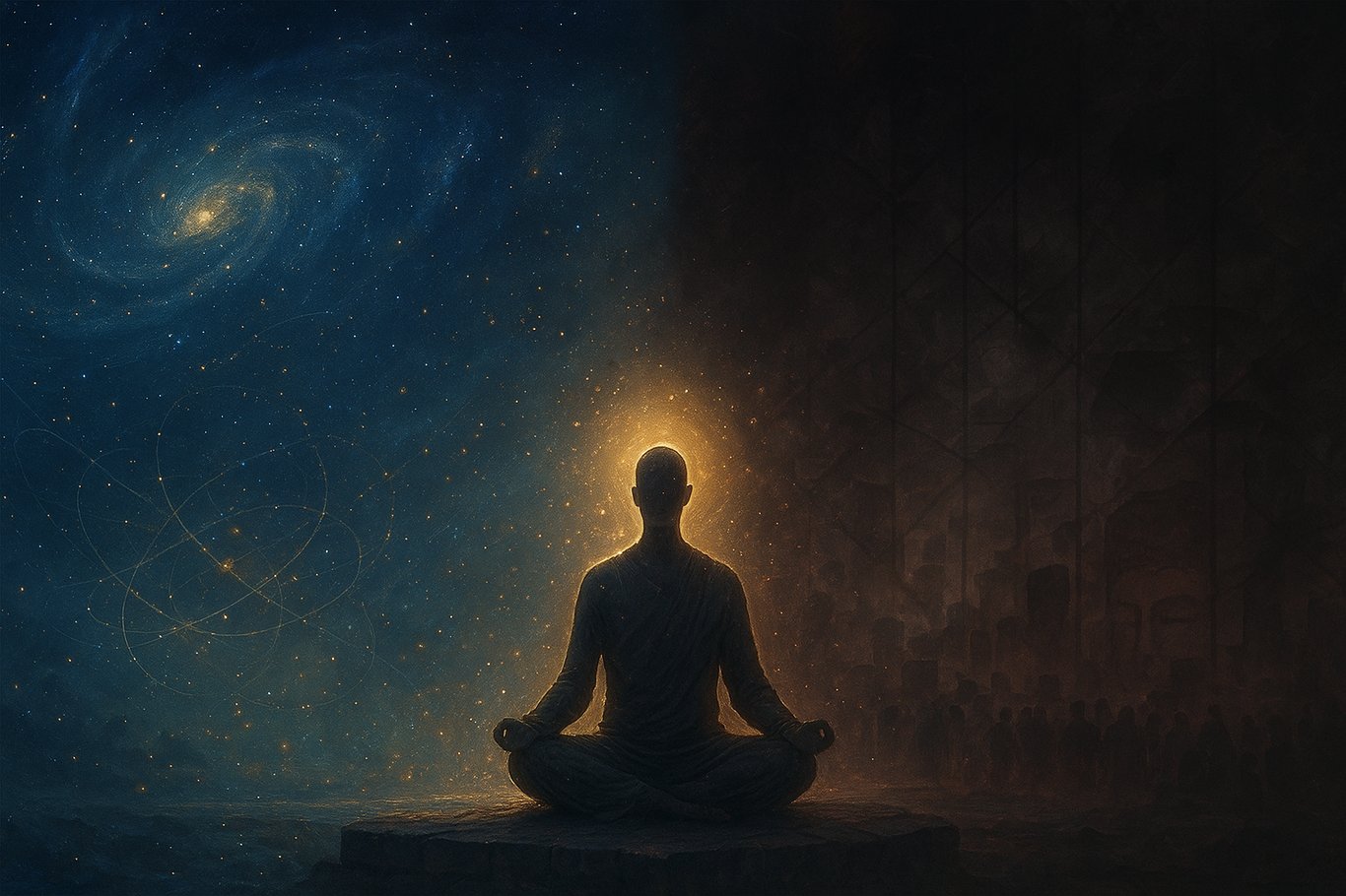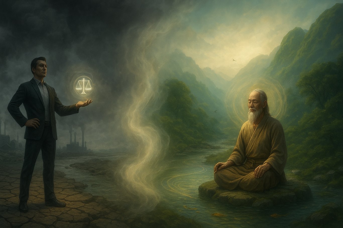 大道五十,天衍四九,人遁其一。即:大道之全貌(五十),由天地自然之道(四九)与人之道(其一)共同构成。二者的关系,正是阴阳理论的精髓体现:天道(四九)为阴,为静,为均衡,是收敛与滋养的力量;人道(其一)为阳,为动,为创造,是发散与建构的力量。 正是这一静一动、一敛一张,构成了大道周行不殆、生生不息的终极动力。