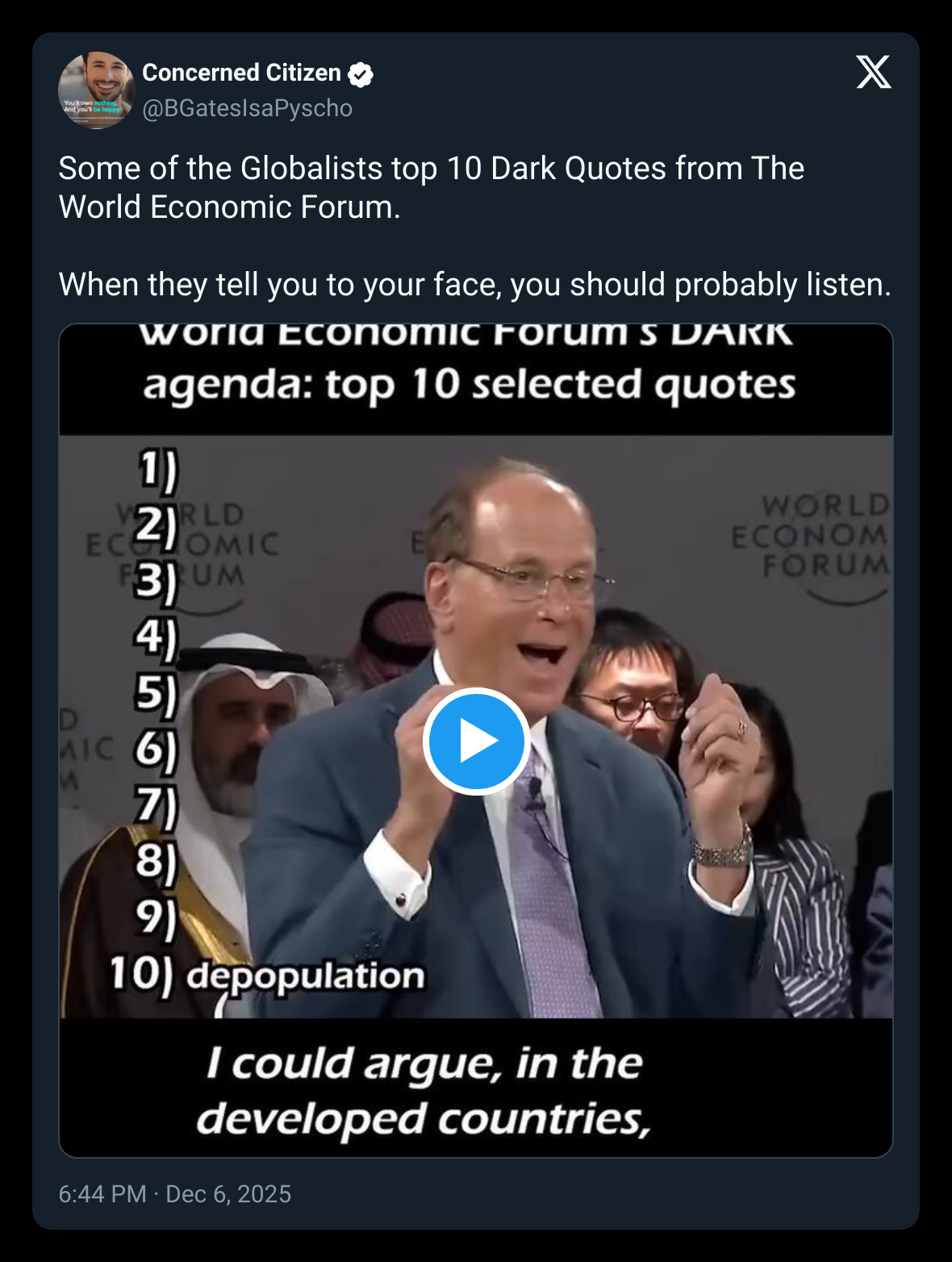 【推文】Concerned Citizen - Some of the Globalists top 10 Dark Quotes from The World Economic Forum