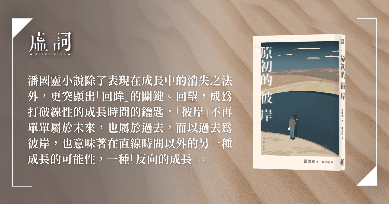 陳志堅先生以「成長」為主題,把作家潘國靈至今創作歷程中的十八篇小說編成一部小說集,以《原初的彼岸》為名向讀者揭示潘氏作品裡其中一個重要的面貌。對於初次接觸潘國靈作品的筆者而言,閱讀這本小說集是一趟不可多得的旅程,也是進入潘國靈小說世界的一次「過渡」,啟程追求在閱讀之中的「成長」。