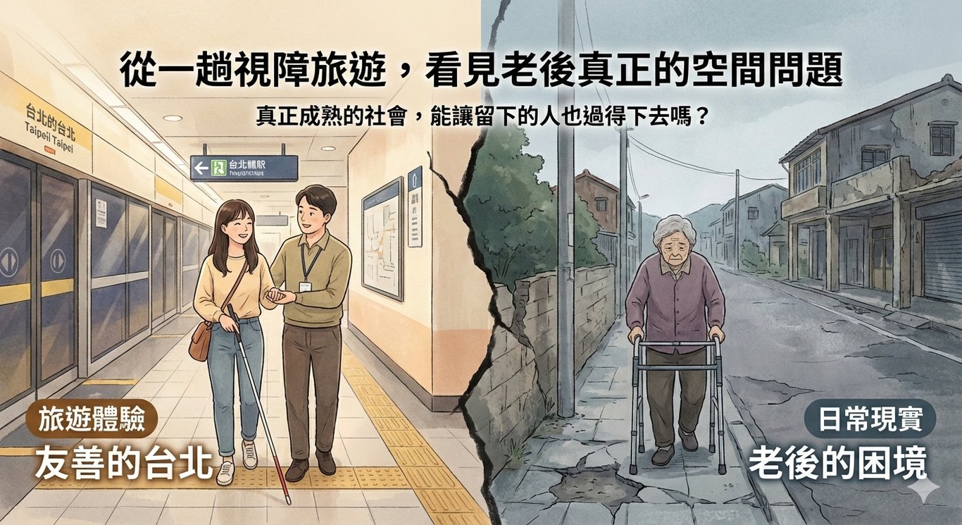 前幾天看到一支 YouTube 影片,一位來自韓國的視障女孩到台灣旅行。影片裡,她多次提到自己在台灣——特別是在台北——感受到前所未有的友善:大眾運輸相對容易使用,無障礙設施清楚,路上也常有陌生人主動伸出援手。她說,這些經驗在韓國幾乎沒有發生過,因此這趟旅程讓她非常感動。 看完影片,我並不否認她的感受是真實的。台灣在某些地方,確實…