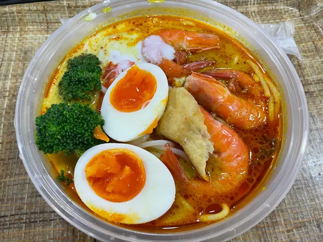 我周圍搵食最怕撞正靚湯但無料,今次喺深水埗試到一碗令我驚喜嘅大蝦喇沙,店名係芭堤雅船屋。點餐後即叫即整,要等一陣,不過值得。 上枱嗰刻已經覺得幾足料。湯有四隻大蝦,仲有豆卜、金菇、蟹柳、西蘭花同一隻蛋,配料比想像中豐富。 喇沙湯底偏咖喱味,帶辣,有深度,唔係嗰種只靠椰漿打出嚟嘅甜。麵底用粗麵,口感彈牙,啱鍾意有嚼勁嘅人。 蝦…