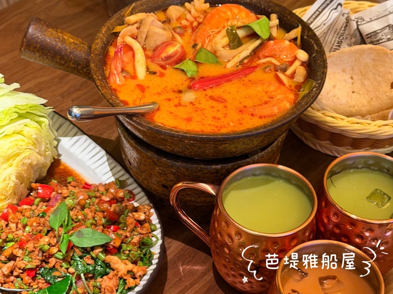 說到泰式料理,很多人第一反應是冬陰功,但對我來說,芭堤雅船屋的喇沙才是「靈魂擔當」。第一次走進店裡,就被濃郁的椰香和香料味勾住腳步,聽老闆說,他們的喇沙湯底要熬足 6 小時,用南薑、香茅、檸檬葉等十幾種泰國香料現炒,再加入新鮮椰漿調和,稠厚的湯汁帶著微微的辣,喝一口就像站在曼谷的街頭。 最愛他們家的「大蝦魚旦喇沙」,蝦肉 Q…
