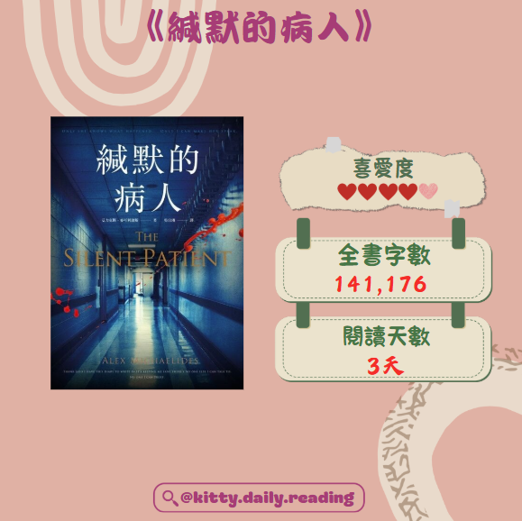 緘默的病人》是一本關於心理治療的懸疑小說,多年前一個女人槍殺丈夫後從此不說話,即使被判入精神病院多年也沒有再說過話。一名心理治療師一直對這個案大感興趣,當知道該精神病院有空缺後便立即應徵,希望能幫助對方解開心理問題。 問題是,她真的有心理問題嗎?抑或她的緘默只是逃避罪責的手段?再向前一步,她真的有殺死丈…