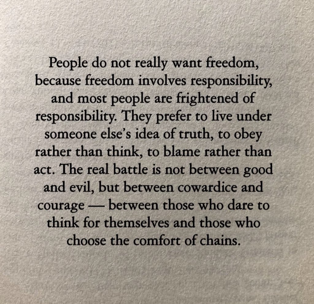 【金句】Fyodor Dostoevsky - People do not really want freedom, because freedom involves responsibility..