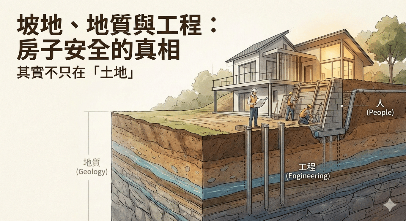 在工地現場摸爬滾打多年,我常被朋友問到一個靈魂拷問:「那是坡地耶,真的能住人嗎?萬一崩下來怎麼辦?」 大眾對於坡地住宅的恐懼,大多源自於對地質的「宿命論」。彷彿一塊地只要被標註為坡地,就注定與災難掛鉤。但身為一名監造,在第一線看過無數鋼筋、泥作與擋土牆後,我看到的真相卻是:地質決定了風險的樣貌,但決定生命安全的,往往是…