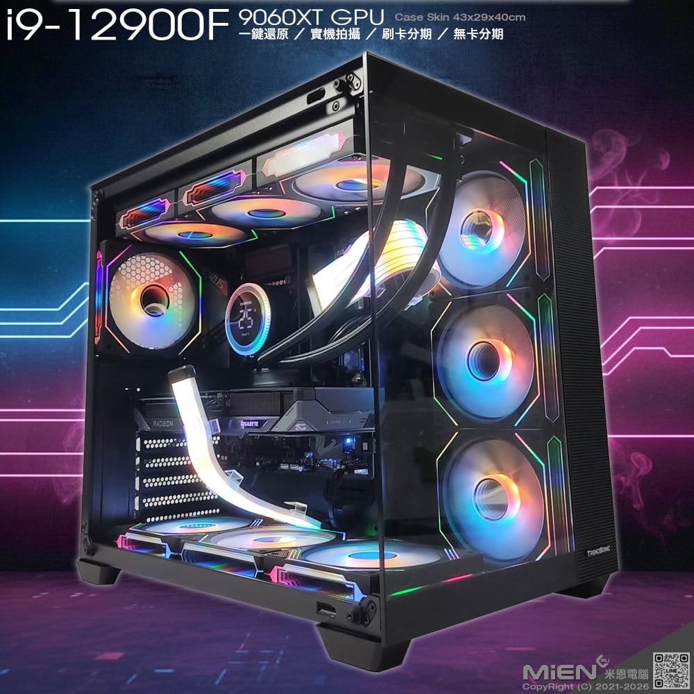 MiEN i9-12900F RX9060XT 剪片製圖Ai播客好用黑色機殼水冷主機米恩電腦