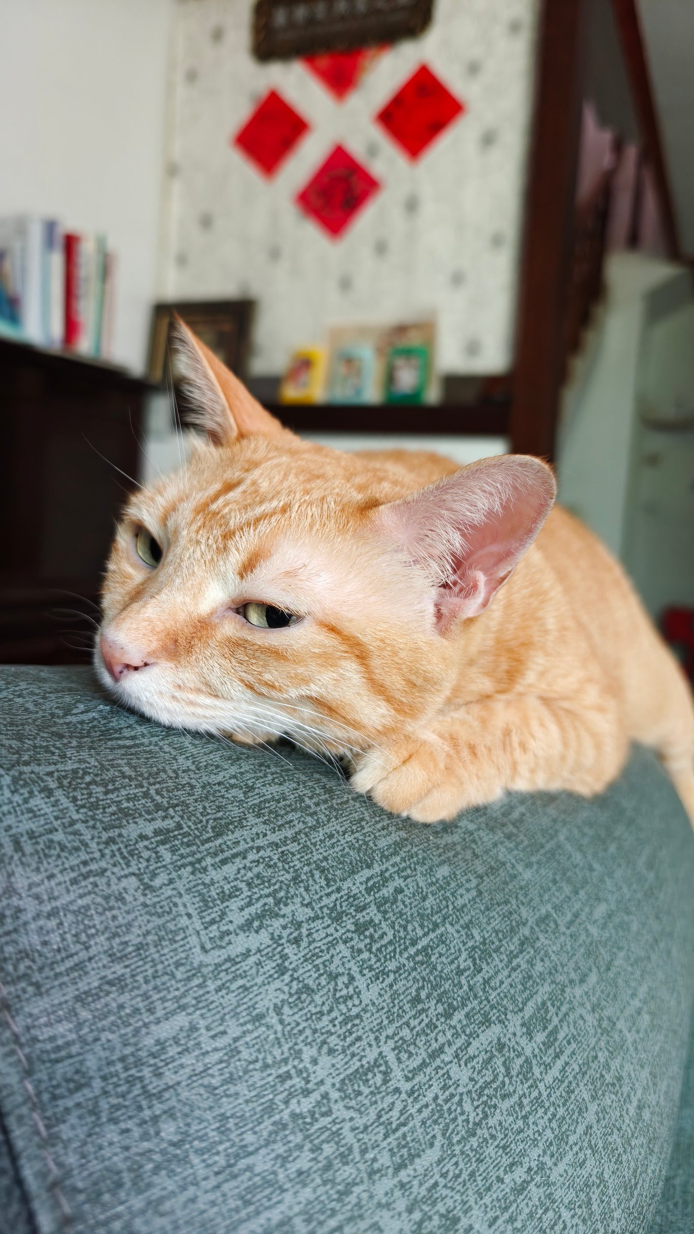 心煩時,或不想多思考的時候,我多半會藉由睡覺來逃避想起煩心或陷入憂鬱的事。 最近的我常常在空閒的時候躺在床上,試圖讓自己睡著,這樣的天氣當然也是想睡的原因之一。 除了我被吸引到床上外,我家貓咪也被吸引上了床,在床上形成一幅有趣的畫面。我與我家比比同時都躺在床上睡覺,牠依偎著我,我則是側身讓牠靠著,就這麼雙雙…
