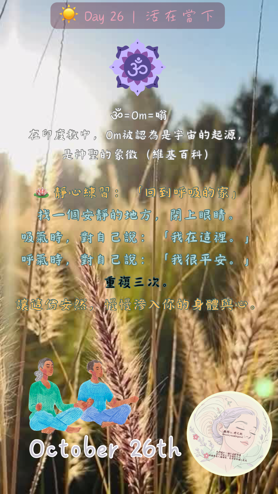 佛法博大精深,理論系統非常嚴謹、複雜與深奧。但佛法也可以很簡單,簡單到就是「回到自己」、「活在當下」。我很慶幸在這年紀就去學佛,有我自己的因緣合和,有我的生命軌跡。接下來,師父引進門,修行看個人,而修行不在道場,不在深山,就在日常。阿彌陀佛。