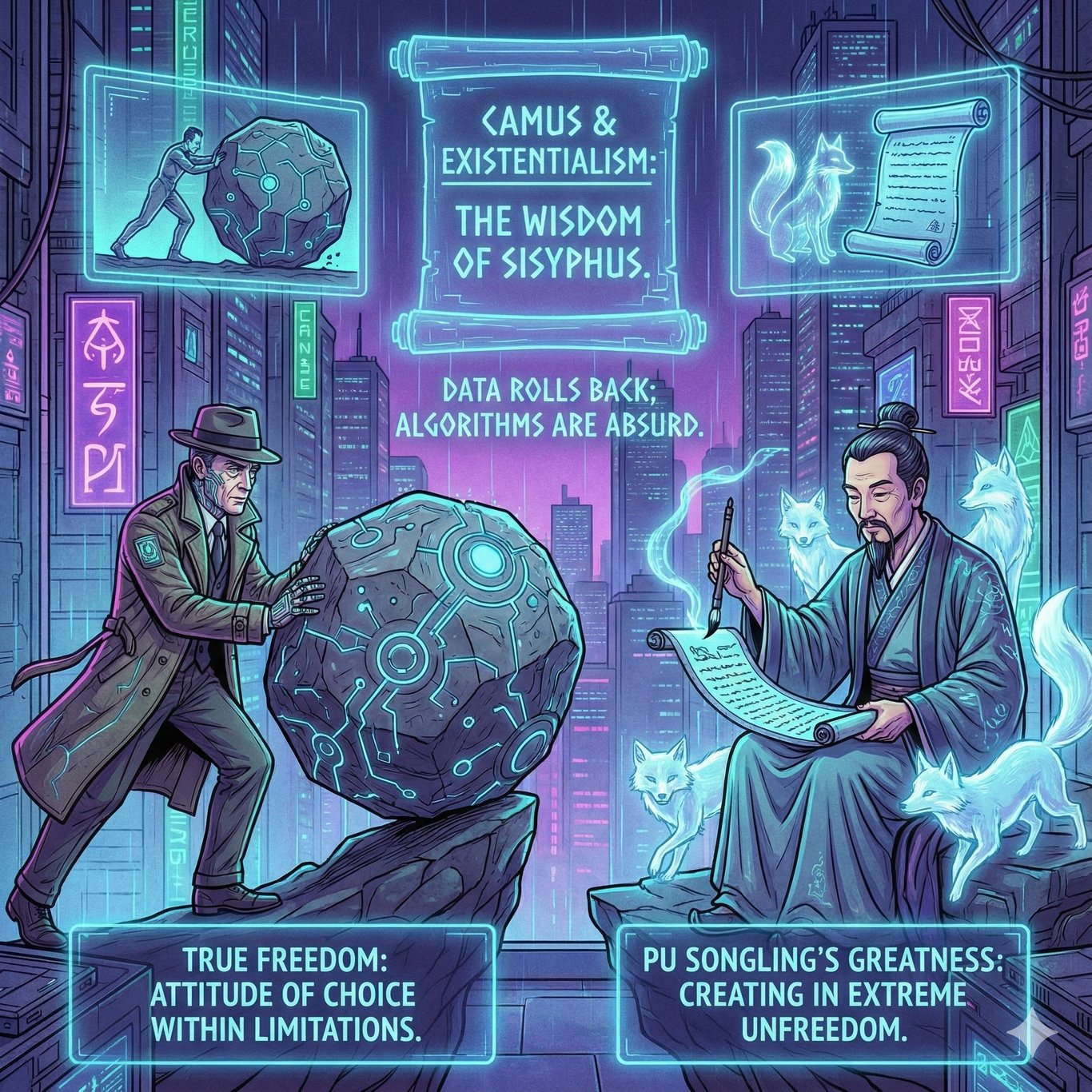 如果「絕對自由」只是讓人癱瘓的迷幻藥,那麼在演算法的監獄裡,我們該如何自處?本系列最終章召喚卡繆與存在主義的智慧,將當代創作者比喻為推石頭的薛西弗斯:數據的石頭總會滾落,演算法的沈默充滿荒謬。但真正的自由不在於擺脫限制,而在於「在限制中保持選擇的態度」。透過關於金錢動機、長期失敗與代價承受的三個靈魂拷問,我們…