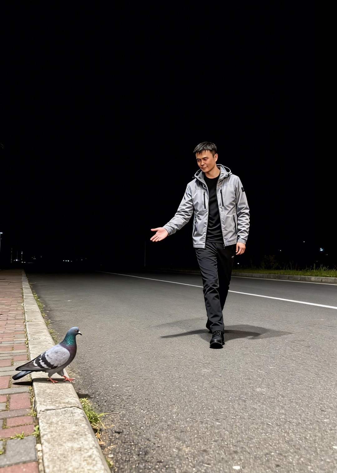 2026-02-22:黑道搭鴿,在黑色無人的夜裡,走在了無人煙的路上,找路邊的鴿子搭訕。