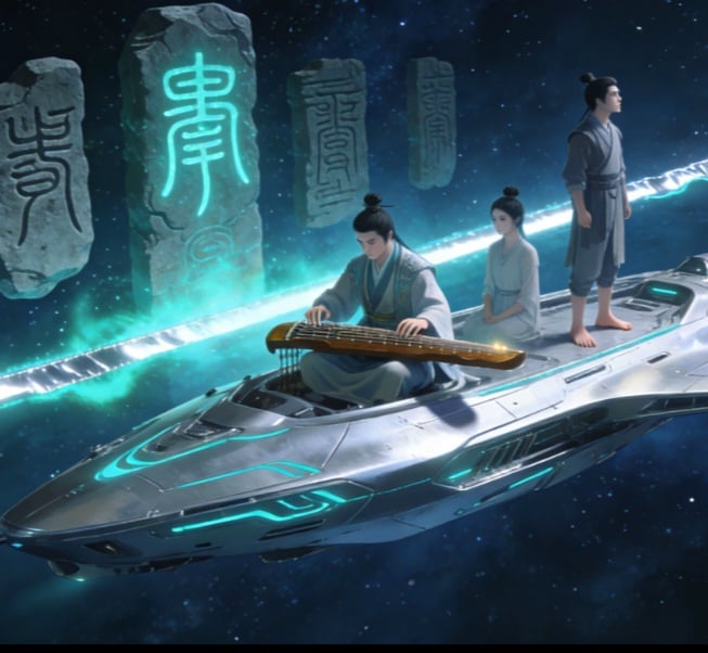 銀色星塵綿延數光年,像被打碎的月光漂浮在無重力之海。凌虛坐在艦船頂層的露臺上,指尖撥過那把用廢棄儀器零件改裝的古琴,琴聲清冽,竟引動周遭星塵簌簌震顫,蕩開一圈圈淺淡的銀色波紋。阿稚赤腳踩在甲板上,手裡攥著一把星塵凝成的飾品,轉圈時銀光灑了滿身,她從沒見過殖民地的權力穹頂,只覺得這隨風飄蕩的艦船,才是真正…